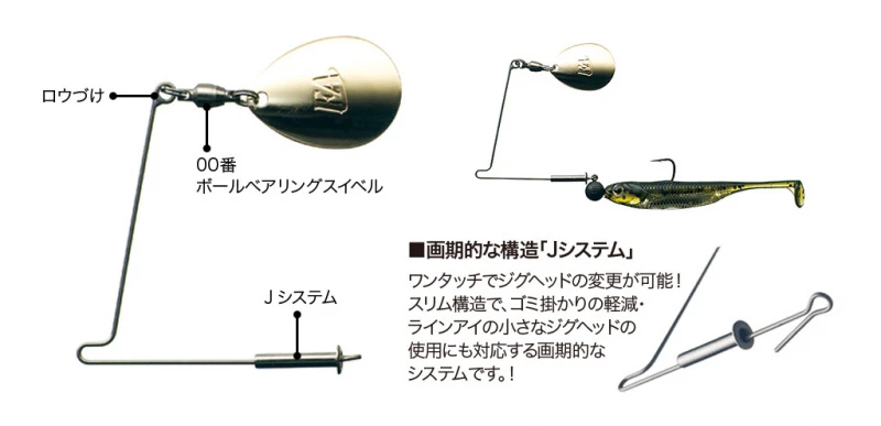 Le « J-Spinner » est un nouveau type de spinnerbait qui a été soigneusement créé avec l’équilibre optimal pour une utilisation avec de petits leurres souples comme la série Fish Arrow Flash J et J-Head.